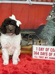 Born on November 4th and ready to meet their families on January 6th, these babies are already showing such personality. Cocoa is our first ever brown and white parti poodle and we were thrilled when she was born! This is the first litter we've had with Harlow Jean and Bravo and we couldn't be happier with the range of colors and their already amazing temperaments. We typically breed for larger standard poodles, so this is a rare chance to get a smaller poodle from us. <3 We expect the girls to weigh 40-55 pounds when fully grown and if they take after their mama, they will be on the small end. Harlow is very petite at 33 pounds and that girl is AGILE!! We expect the boys to weigh in the 45-60 pound range which is on the smaller end for our boys too. Our puppies are raised in our home on puppy curriculum with Early Neurological Stimulation (ENS) and Early Scent Introduction (ESI). Our goal is to socialize them and help create the best well rounded companion that we can for you! Our puppies receive regular handling, grooming exposure and are introduced to crate and potty training. We want them to be ready for any lifestyle and family that could come their way, and we strive to give them the foundation to thrive in all environments. We live on a farm, so they will be used to seeing all the animals, along with hearing all of the sounds and smells of the farm. We are so happy to offer you this beautiful puppy from health tested parents. Thank you for looking!